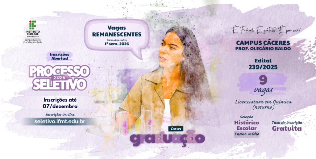 LICENCIATURA EM QUÍMICA - INSCRIÇÕES ATÉ 07 DE DEZEMBRO